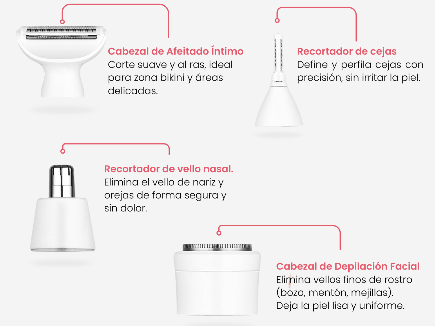 4 Cabezales Para cada parte de tu cuerpo + Limpiador y su cargador USB - C.